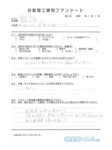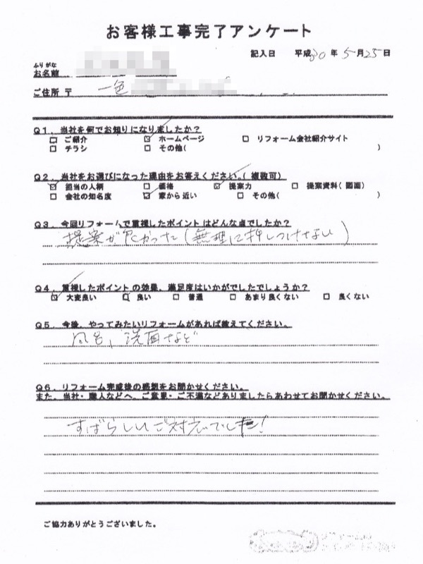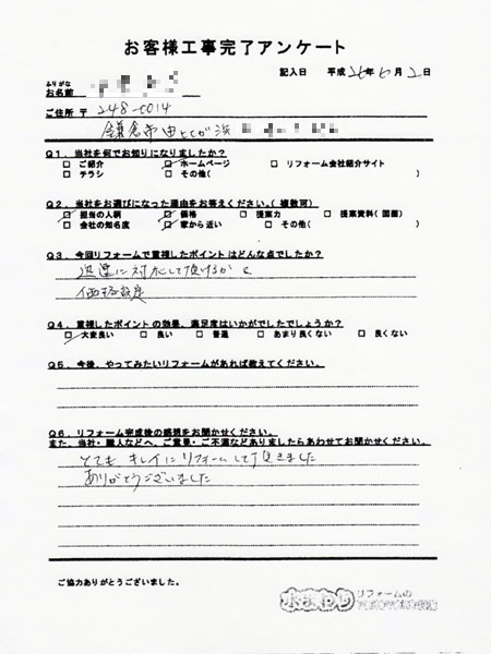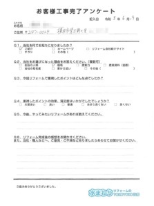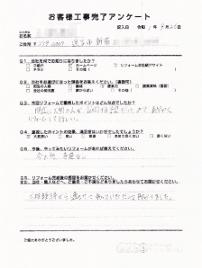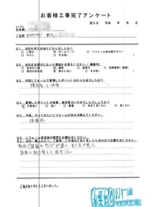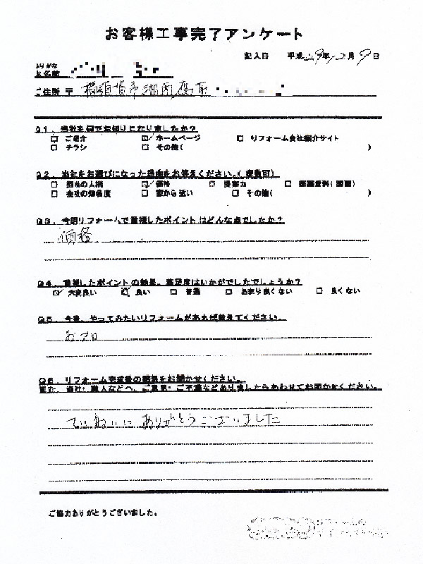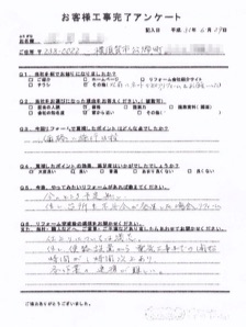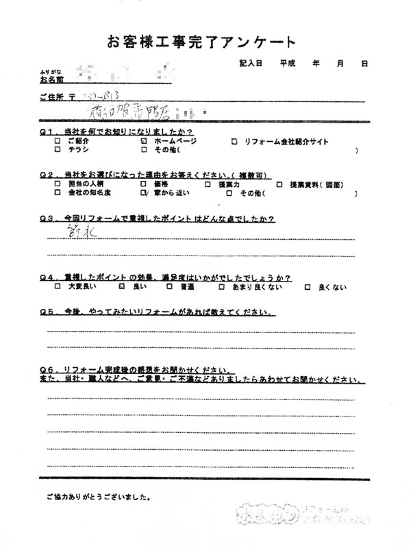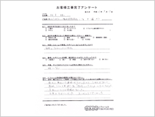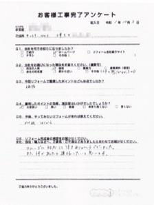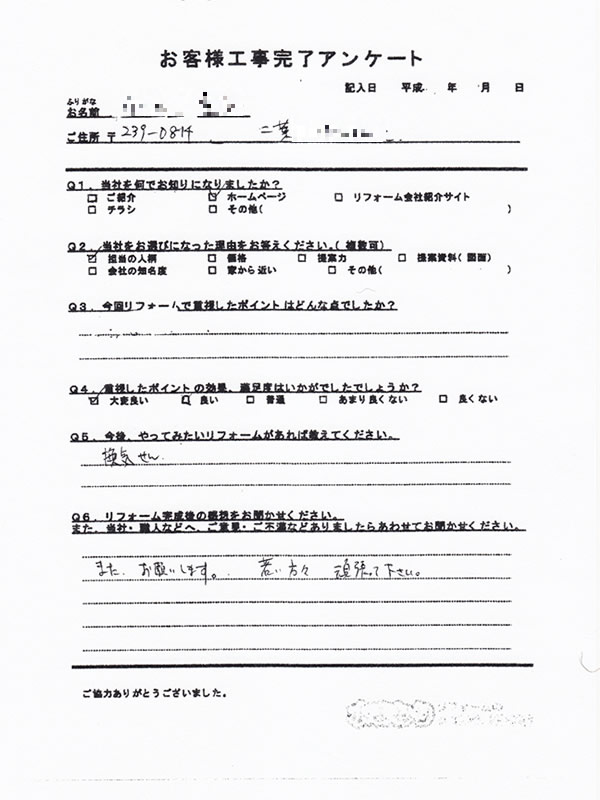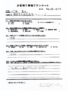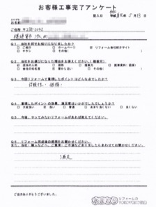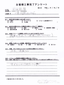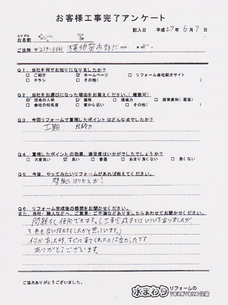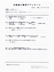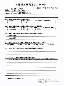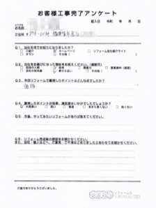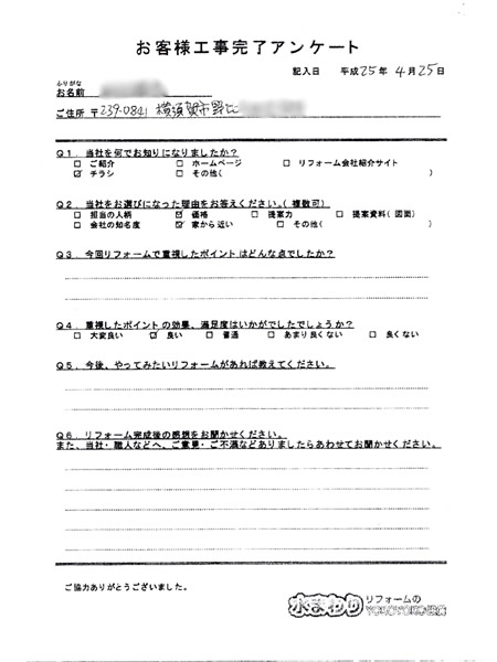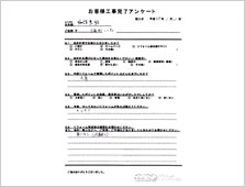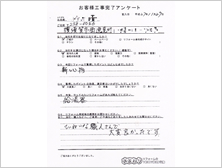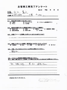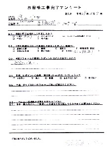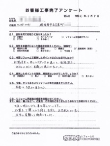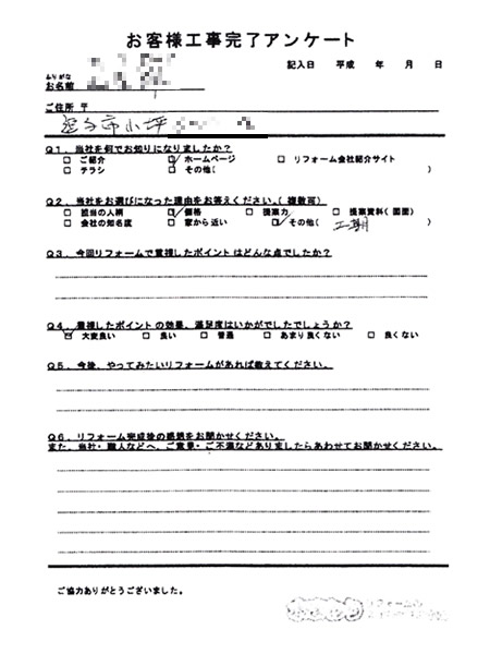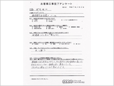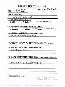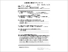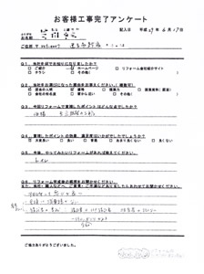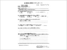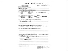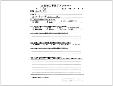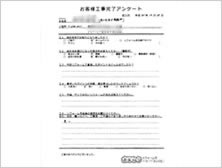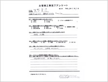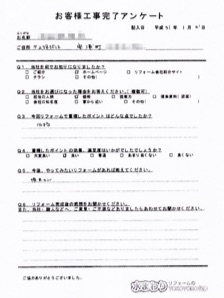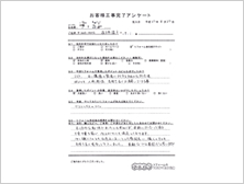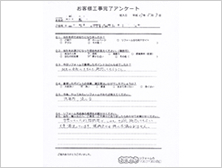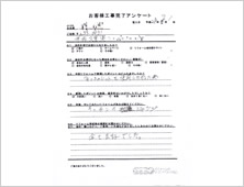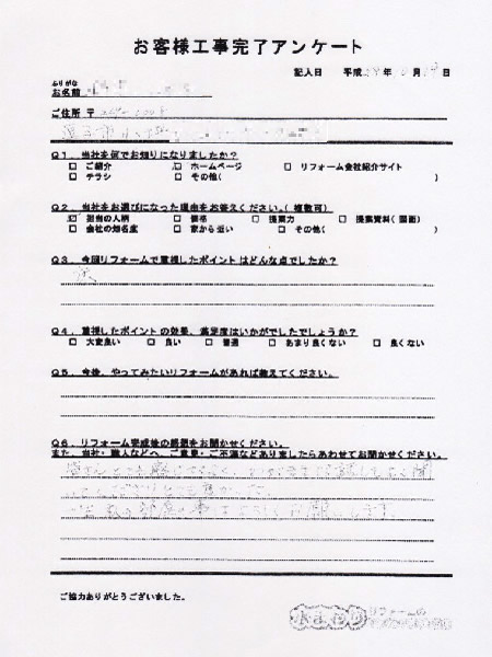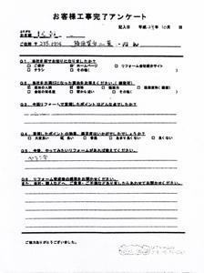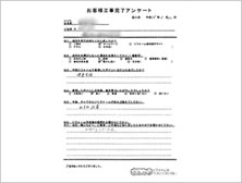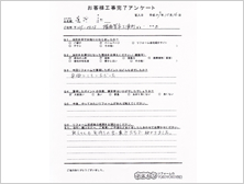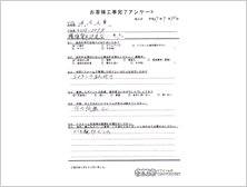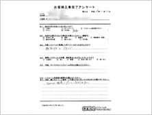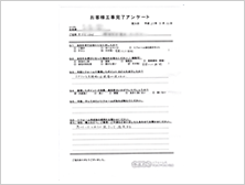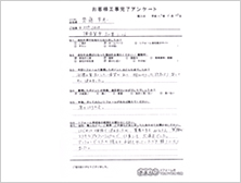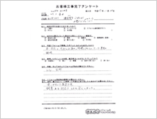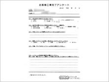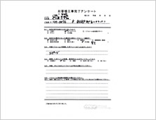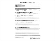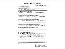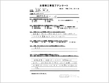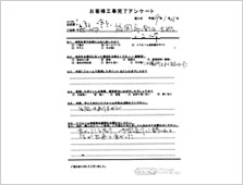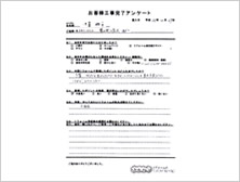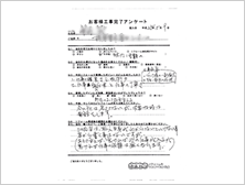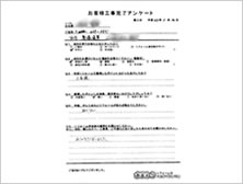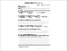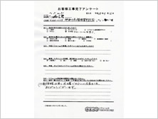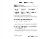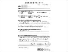 お客様に満足していただける住まい作りができるよう、また、私たちが今後もより良いお手伝いができるよう、工事完了後にアンケートをご記入いただいています。