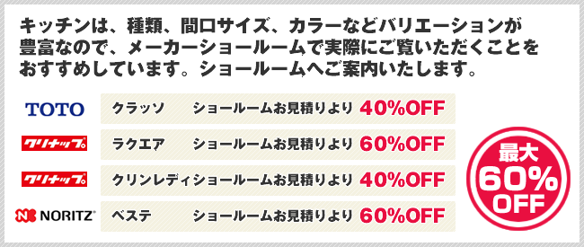 機能や形、色選びなど、ここでは掲載しきれないほど、多数の組み合わせがあります。あとから使い勝手が良くなかった、イメージしてた色と違ったなど、後悔しないためにも、YOKOYOKO設備では、一度ショールームへご案内し、実際に目で見て触れながらご説明させていただいたくことをオススメしています。