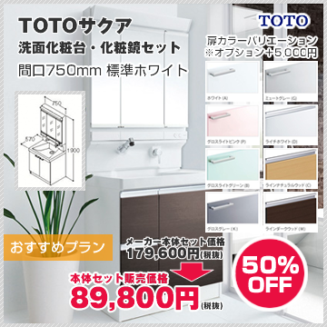 おすすめプラン TOTO サクア 間口750mm標準ホワイト